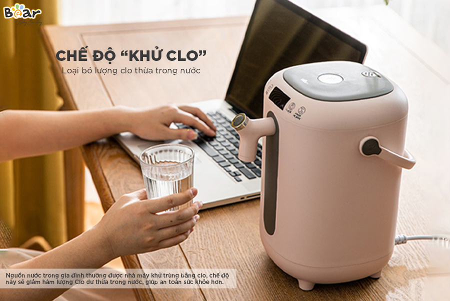 Bình thủy điện Bear 3L tích hợp 2 chế độ đun sôi và có đến 11 mức nhiệt giữ ấm từ 40-90 độ C, giúp bạn có thể tùy chỉnh nhiệt độ nước thích hợp để chuẩn bị nhiều món đồ uống, phục vụ cho từng nhu cầu của các thành viên trong gia đình. Ngoài ra, không thể không kể đến tính năng khử clo trong nước của bình thủy điện Bear. Tính năng này đem lại nguồn nước an toàn, tinh khiết với chất lượng đạt chuẩn tuyệt đối và đảm bảo sức khỏe cho cả gia đình bạn.