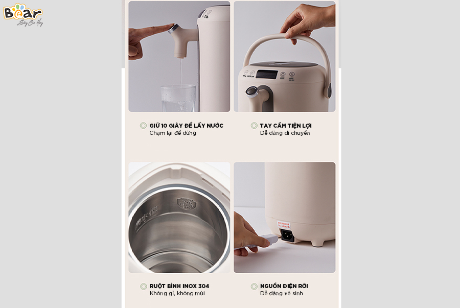 Bình thủy điện 3L Bear đảm bảo an toàn tuyệt đối cho người sử dụng