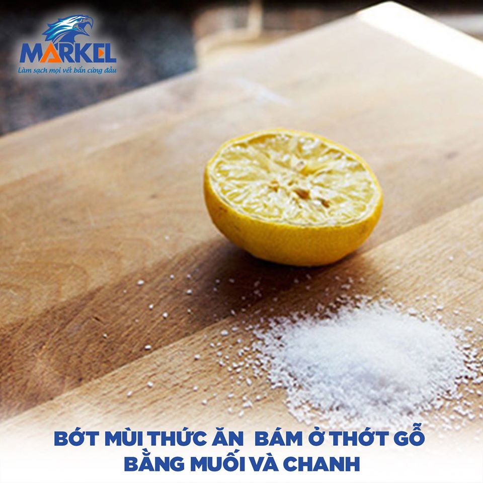 4️⃣Bớt mùi thức ăn bám ở thớt gỗ bằng muối và chanh
