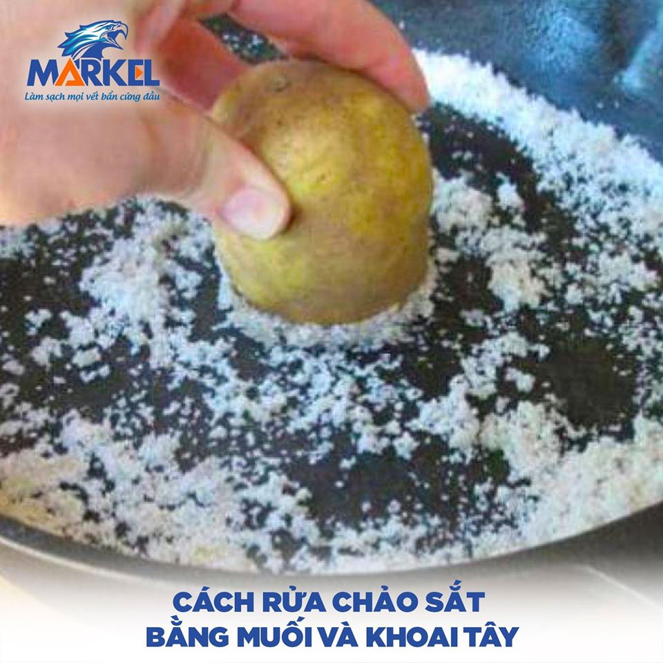 6️⃣Cách rửa chảo sắt bằng muối và khoai tây