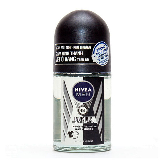 - Lăn khử mùi Nivea For Black & White là sản phẩm sở hữu công thức tiên tiến chứa tinh chất muối nhôm, sản phẩm giúp giảm tiết mồ hôi và ngăn mùi hiệu quả đến 48 giờ, cho bạn cảm giác khô thoáng suốt ngày dài.