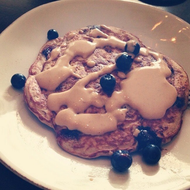 Công thức món bánh pancake này cũng khá đơn giản: một thìa canh bột protein, lòng trắng trứng, 1/2 cốc chuối nghiền, và hạt lanh rồi thêm chút bột trà xanh, trộn đều và nướng trên chảo. Đây là bữa sáng cũng khá ngon miệng, dễ ăn, giàu dinh dưỡng đặc biệt là protein.