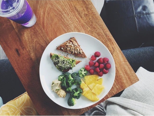 Bữa sáng này bao gồm món nướng thập cẩm giàu dinh dưỡng: bánh mì, bơ hạnh nhân, quả bơ nghiền nhuyễn, hạt hướng dương và vừng. Bạn có thể uống thêm 1 cốc sinh tố. Tất nhiên ngoài ra thành phần quan trọng không thể thiếu đó là trái cây và rau xanh. Đảm bảo đây là bữa sáng vừa đủ chất lại vừa ngon miệng khiến bạn không thể bỏ qua.