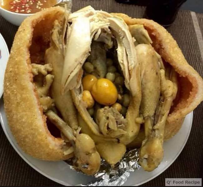 Gà làm sạch, dùng 2 muỗng cà phê muối và 1 muỗng sup rượu trắng ướp gà,ướp từ trong ra ngoài cho gà thấm, ướp gia vị khoảng 1 đêm.